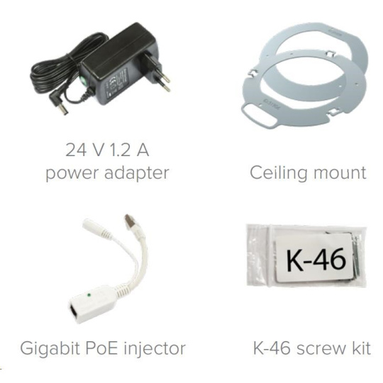 Balení obsahuje: cAP ac, napájecí adaptér, PoE injektor, montážní sada