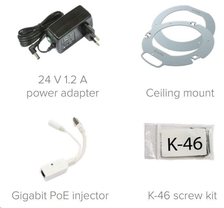 Balení obsahuje: cAP ac, napájecí adaptér, PoE injektor, montážní sada