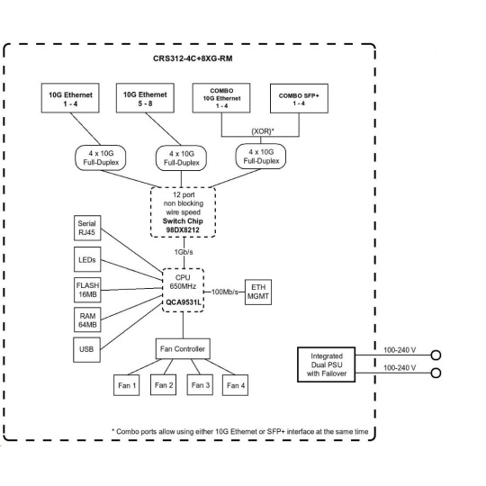 MikroTik CloudRouterSwitch CRS312-4C+8XG-RM