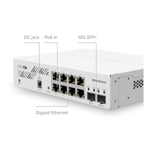 MikroTik Cloud Smart Switch CSS610-8G-2S+IN, 8 gigabit.portů, PoE-In, 2xSFP+, SwOS