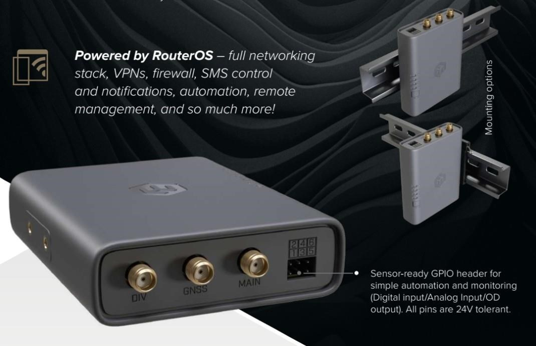 Brána IoT průmyslové třídy s LTE/BLE/GNSS konektivitou pro inteligentní sledování majetku, vzdálené monitorování a efektivní automatizaci. Původně navrženo pro kávovary a prodejní automaty – ideální pro všechny druhy průmyslové automatizace. KNOT Embedded LTE4 je malá, ale výkonná průmyslová LTE brána určená pro integrátory, specialisty na automatizaci a tvůrce systémů IoT. Hodí se do stísněných prostor, montuje se přímo na DIN lištu a poskytuje spolehlivé připojení LTE Cat4 s podporou Bluetooth a GNSS. Použijte ji jako primární bránu, záložní spojení nebo uzel pro sběr dat IoT – vše je poháněno systémem RouterOS pro maximální flexibilitu. Funkce a vlastnosti KNOT Embedded LTE4 je určen pro prostředí, kde je omezený prostor, ale spolehlivost je zásadní: • Infrastruktura inteligentních měst (parkování, senzory, měření) • Monitorování kávovarů a prodejních automatů • Skříně pro průmyslovou automatizaci • Monitorování životního prostředí a veřejných služeb • Sledování vozidel nebo majetku pomocí GNSS • Prodejní kiosky, platební terminály, digitální značení • Záložní připojení LTE pro stávající zařízení Ethernet • Brány IoT pro senzory a majáky BLE Upozornění: IoT brána není plnohodnotným LTE routerem. SIM karta není určená pro vytáčení připojení, ale pro komunikaci v síti IoT. IoT brána nedisponuje LTE modemem. Technické specifikace: Product code: EC25-EU&KNe CPU: ARM 32-bit Cortex A7 up to 1.2 GHz Size of RAM: 256 MB RAM type: DDR Storage: 512 MB Number of 1G Ethernet ports: 1 GNSS interface model: EC25-EU GNSS standard: BeiDou, Galileo, GPS, Glonass RF connector type: SMA female SIM slots: Nano SIM, eSIM Bluetooth version: 5.4 MIMO DL: 2x2 MIMO UL: 1x1 Dimensions: 90 x 70 x 22 mm Operating system: RouterOS v7, License level 3 Operating temperature: -40°C to +70°C Napájení: Number of DC inputs: 2 (PoE-In, USB Type-C (powering only)) PoE-In input Voltage: 12-57 V USB Type-C input voltage: 5 V Power adapter nominal voltage: 5 V Power adapter nominal current: 0.8 A PoE-in: 802.3af/at Max power consumption: 7 W EC25-EU (EMEA) podporovaná pásma: LTE modem: EC25-EU TAC: 86554604 LTE Category: 4 (150Mbps Downlink, 50Mbps Uplink) LTE FDD bands: 1 (2100MHz) / 3 (1800MHz) / 7 (2600MHz) / 8 (900 MHz) /20 (800MHz) / 28A (700 MHz) LTE TDD bands: 38 (2600MHz) / 40 (2300MHz) / 41 (2500MHz) 3G Category: R8 (42.2Mbps Downlink, 5.76Mbps Uplink) 3G bands: 1 (2100MHz) / 8 (900MHz) 2G Category: Class12 2G bands: 3 (1800MHz) / 8 (900MHz) Internet věcí (anglicky Internet of Things, zkratka IoT) je termínem pro moderní přístroje ovladatelné i na dálku pomocí internetu. Snadno je tak obsloužíte pomocí svého chytrého telefonu nebo je jednoduše připojíte k centrální jednotce. Umožní tak snadno zautomatizovat věci, o které byste se jinak museli postarat sami. Jedná se o technologický koncept umožňující realizaci takzvaného "inteligentního domu" (automatické zhasínání světel, ovládání vytápění apod.). Umožňuje řídit klimatizaci, vyhřívání vašeho bazénu, ohřev vody, pečovat o vaše akvárium, obsluhovat nastavení alarmu či mechanických zámků. Pokud si nejste jistí, zda jste v ranním shonu vypnuli žehličku, můžete na dálku odpojit od sítě jednotlivé zásuvky. Vaše lednička vás dokáže upozornit na chybějící potraviny a připravovat aktualizovaný nákupní seznam. Upozornění Výrobce Mikrotik neposkytuje záruku na zařízení poškozená přepětím. Zařízení je třeba adekvátně chránit proti indukovanému elektrostatickému přepětí či přepěťovým špičkám na silovém vedení. Pro venkovní instalace používat výhradně stíněnou kabeláž (FTP/SFTP), jednotky korektně uzemnit (užití integrovaného zemnícího členu, ethernetové přepěťové ochrany). Zařízení vždy provozujte s poslední výrobcem publikovanou verzí (výrobcem označenou "Stable") operačního systému RouterOS. Taková verze garantuje nejoptimálnější funčknost, obsahuje opravené chyby z verzí předchozích a výkonová i funční vylepšení.Taková verze garantuje nejoptimálnější funčknost, obsahuje opravené chyby z verzí předchozích a výkonová vylepšení. .