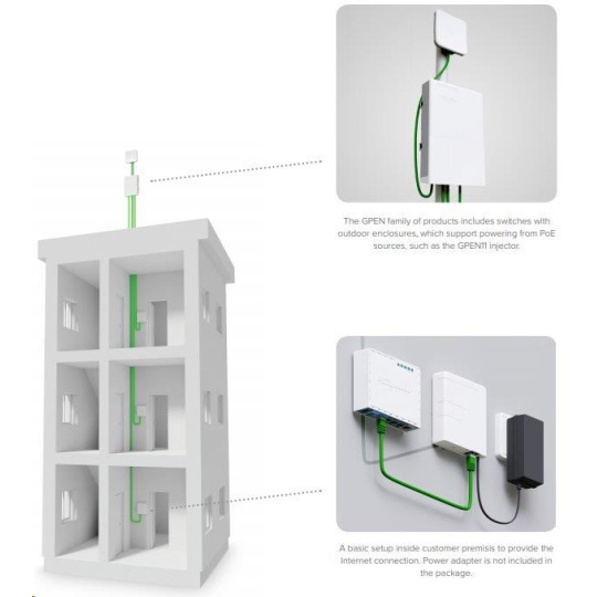 Tento injektor je součástí konceptu GPEN výrobce MikroTik, který má za cíl stát se levnější alternativou k instalacím GPON s mnohem jednodušší výstavbou sítě.