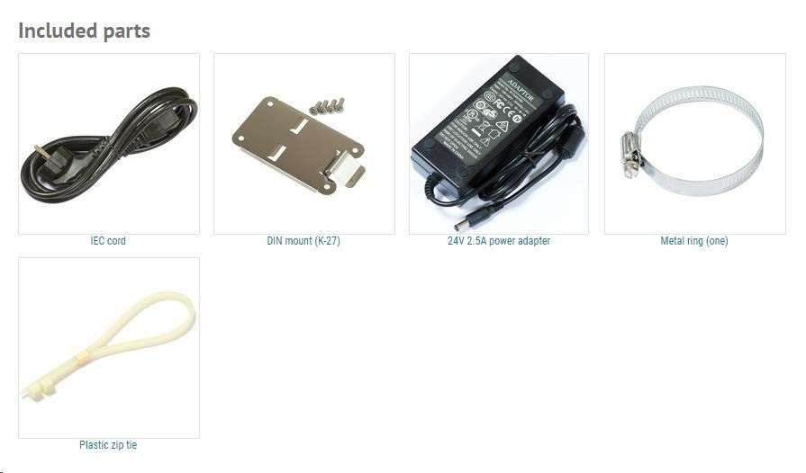 | PoE | Ports 2 - 5, 802.3af/at, max 1 A per port (input < 30 V), max 450 mA per port (input > 30 V), max out total: 2 A |