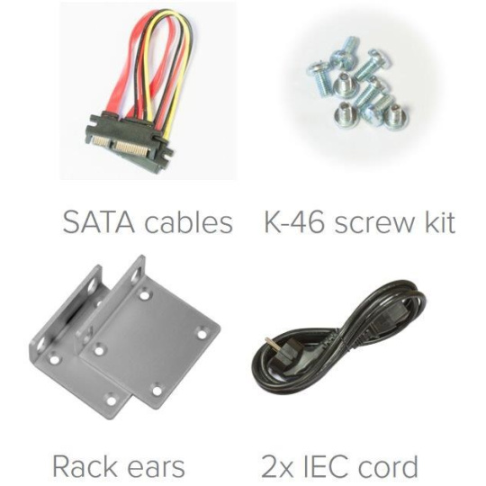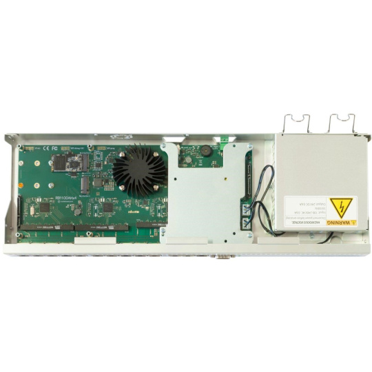 Balení obsahuje: RB1100AHx4 v hliníkovém krytu do 1U, integrovaný napájecí zdroj, 2x napájecí kabel, SATA kabel, M.2 SSD 60GB, úchyty do rozvaděče