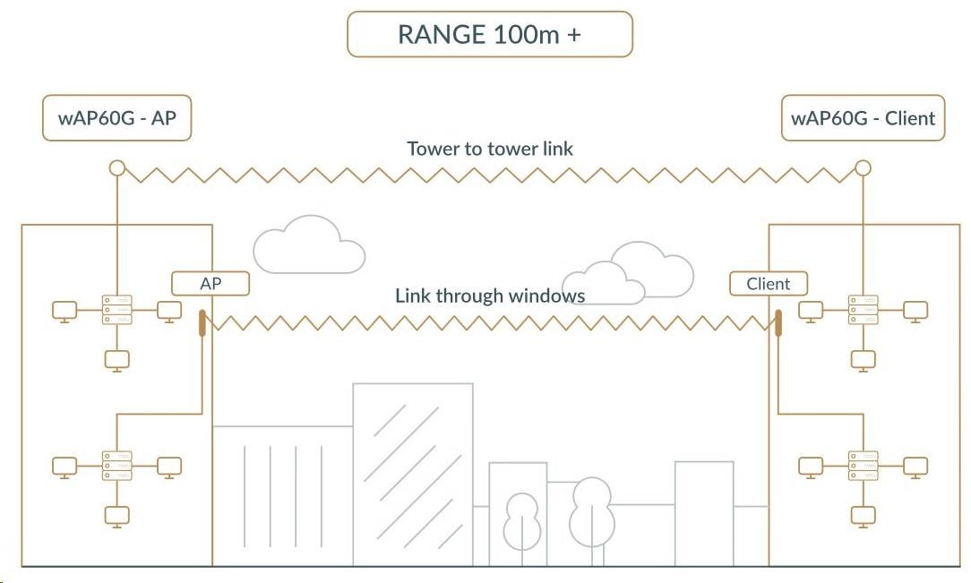 RBwAPG-60ad je naprosto revoluční novinka v MikroTik sortimentu, která osloví každého, kdo vytváří spoje na krátké vzdálenosti. RBwAPG-60ad je kompletní bezlicenční spoj v 60GHz pásmu pracující se standardem 802.11ad, který v reálném provozu umožňuje propustnost až 1000Mbps Full Duplex na vzdálenost až 100m. RouterBoard je jako vždy vybaven velmi oblíbeným operačním systémem RouterOS s L3 licencí. Pro upgrade jedné z jednotek na AP je potřeba dokoupit pouze L4 licenci.