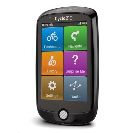 Navigace na kolo Cyclo™ 210 má intuitivní rozhraní a je uživatelsky komfortní, takže během několika minut budete moci vyrazit na kole na cesty.