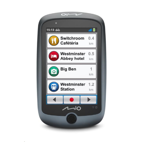 Zařízení Mio Cyclo™ Discover Connect s velkou 3,5" dotykovou obrazovkou, s jednoduchou strukturou nabídky a s přehlednými obrazovkovými tlačítky zajištuje opravdu snadné používání.