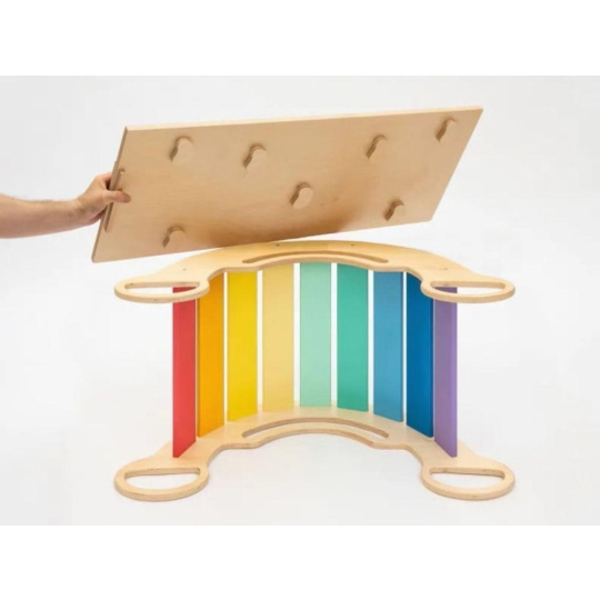 Dřevěná dětská Montessori houpačka smile 6in1 vás překvapí svým designem i multifunkčností. Houpačka bude každý den svým širokým úsměvem lákat děti k příjemnému pohoupání i k zábavné hře. Její využití je všestranné, může být houpačkou, skluzavkou, prolézačkou, skrýší i sedačkou, při doplnění oboustranným prknem i dětským nábytkem. Oboustranné prkno není součástí houpačky. Díky svěžím fresh barvám rozzáří každý dětský interiér. Vyrobená je z těch nejkvalitnějších materiálů, ručně dohladka opracovaná a lakovaná barvami s atestem. Montessori houpačka smile je širší než naše Montessori houpačky 5in1, proto k této houpačce nabízíme i speciální oboustranné prkno, které je doplňkem k houpačkám smile. Díky prknu snadno proměníte houpačku smile v dětský stoleček. Oboustranné prkno není součástí houpačky, pro využití houpačky jako nábytku je nutné prkno samostatně dokoupit..