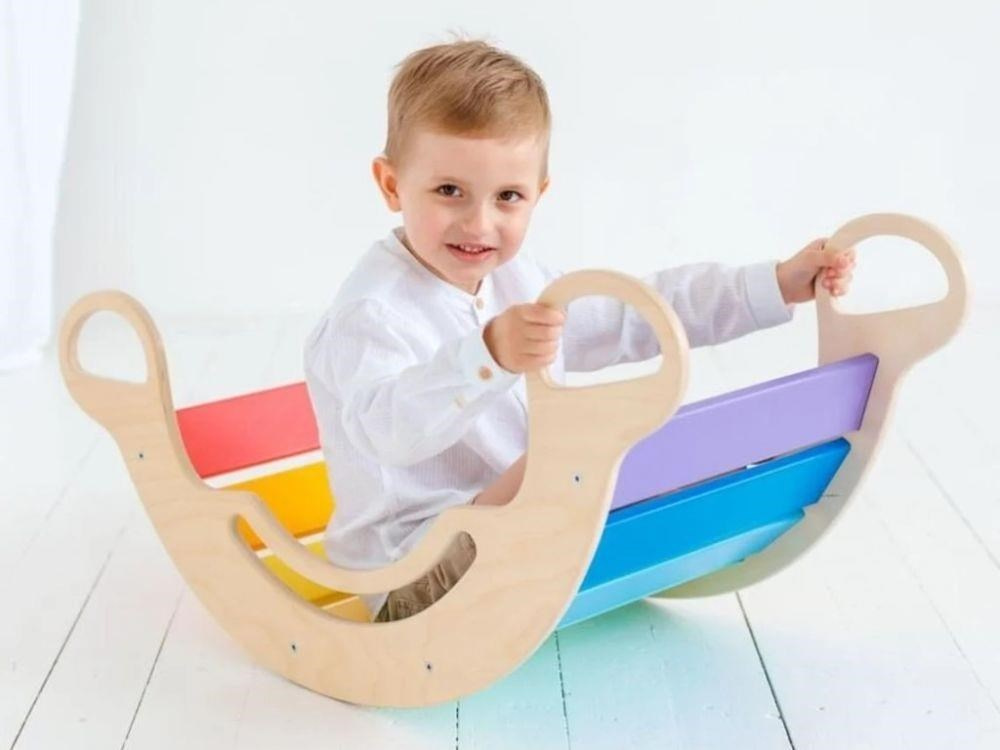 Dřevěná dětská Montessori houpačka smile 6in1 vás překvapí svým designem i multifunkčností. Houpačka bude každý den svým širokým úsměvem lákat děti k příjemnému pohoupání i k zábavné hře. Její využití je všestranné, může být houpačkou, skluzavkou, prolézačkou, skrýší i sedačkou, při doplnění oboustranným prknem i dětským nábytkem. Oboustranné prkno není součástí houpačky. Díky svěžím fresh barvám rozzáří každý dětský interiér. Vyrobená je z těch nejkvalitnějších materiálů, ručně dohladka opracovaná a lakovaná barvami s atestem. Montessori houpačka smile je širší než naše Montessori houpačky 5in1, proto k této houpačce nabízíme i speciální oboustranné prkno, které je doplňkem k houpačkám smile. Díky prknu snadno proměníte houpačku smile v dětský stoleček. Oboustranné prkno není součástí houpačky, pro využití houpačky jako nábytku je nutné prkno samostatně dokoupit..