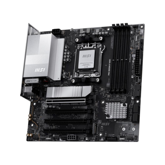 PRO B850M-P WIFI offers a simple design with a harmonious silver color scheme that perfectly matches both white and black PC builds. It is engineered with many exclusive features of MSI, a Wi-Fi 7 with EZ Antenna, 5G LAN, PCIe 5.0 M.2 with EZ M.2 Shield Frozr II, and Supplemental PCIe Power, ready for the AMD Ryzen™ 9000 series processors.