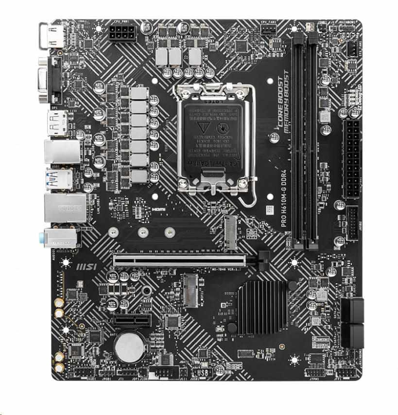 MSI MB Sc LGA1700 PRO H610M-G DDR4, Intel H610, 2xDDR4, 1xDP, 1xHDMI, 1xVGA, mATX