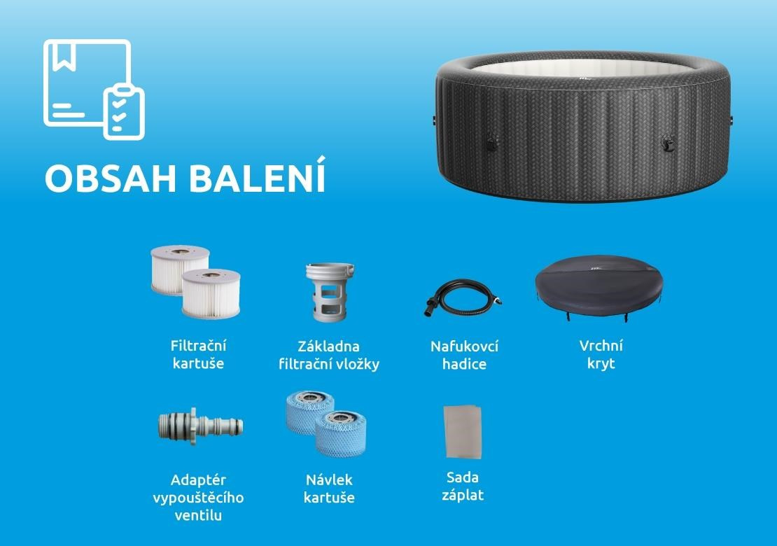 - 2x filtrační vložka (kartuše). Pro fungování vířivky mohou být použity kartuše s potahem i bez potahu.