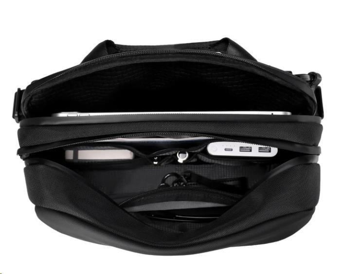Na zadní straně brašny se nachází skrytá bezpečnostní kapsa k uložení cenností.
