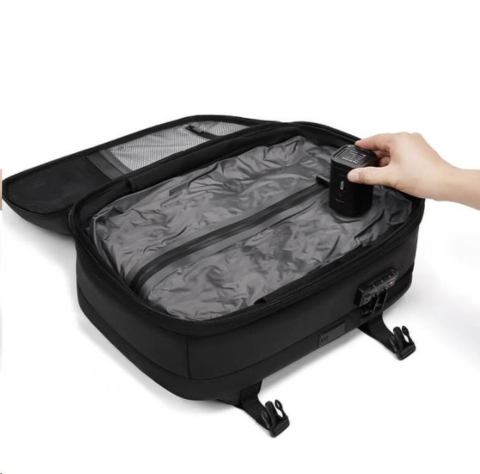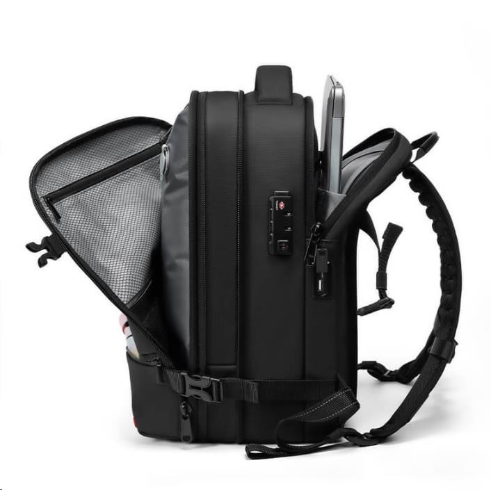 Dalšími skvělými vychytávkami tohoto cestovního parťáka jsou rozšiřitelnost, izolační nepropustná kapsa, samostatná přihrádka na notebook a mnohé další. Skvělou organizaci věcí umožňuje množství praktických vnitřních kapes, skrytá kapsa na cennosti a vnější kapsa na láhev. Klid na cestách vám zajistí bezpečnostní TSA zámek na kód, který ochrání všechny vaše uložené věci a je velmi praktický v případě kontrol na letištích. Pro co nejefektivnější odsátí vzduchu můžete využít naši kompresní pumpu, kterou nabízíme jako příslušenství k batohu.