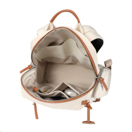 Batůžek je dostupný ve dvou barevných variantách: béžové s hnědými detaily a černé, univerzální k různému oblečení.