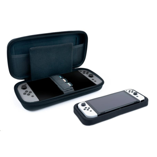 V tomto pevném přepravním pouzdru od společnosti Nacon můžete bezpečně a bez obav převážet svou herní konzoli Nintendo Switch 2. Polstrovaný oddělovač uprostřed pouzdra se postará o to, aby obrazovka konzole neutrpěla při převozu ani škrábnutí, a na pásku na suchý zip držícím konzoli na místě naleznete navíc tři kapsičky pro uložení karet s vašimi oblíbenými hrami. V síťované kapse v horní části pouzdra se poté nachází dostatek prostoru pro nezbytné příslušenství. Součástí pouzdra je také vyjímatelné mezidno pro konzole Switch, Switch Lite a Switch – OLED Model.