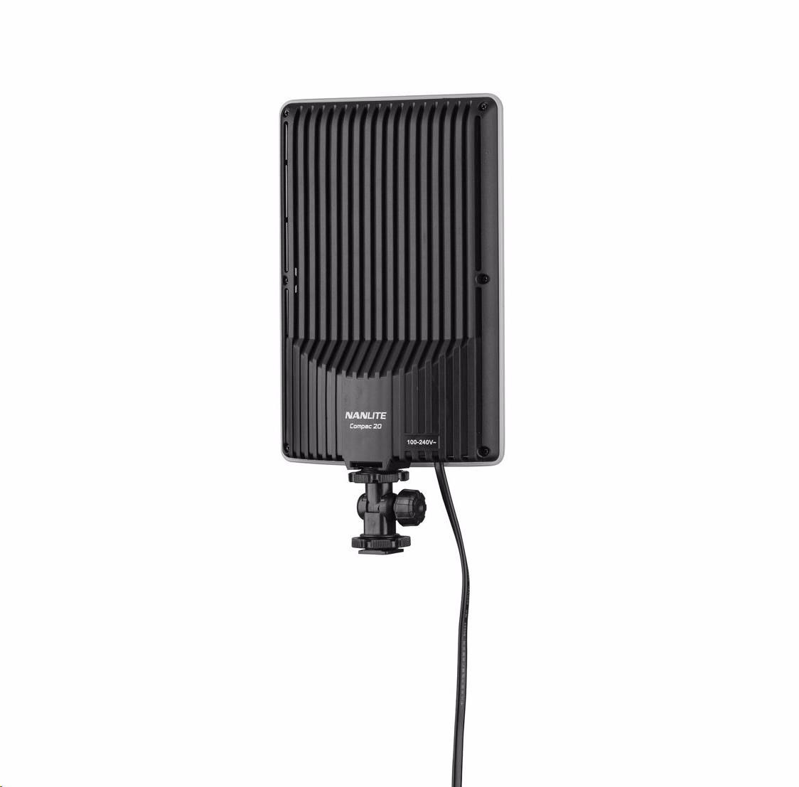 Naklonit světlo můžete ve více než 180 stupních do obou stran, abyste světlo nastavili podle vašich potřeb. Nanlite Compac 20 je dodáván se standardním 5/8" závitem, díky kterému jej můžete připevnit na jakýkoli standardní stojan na světlo.