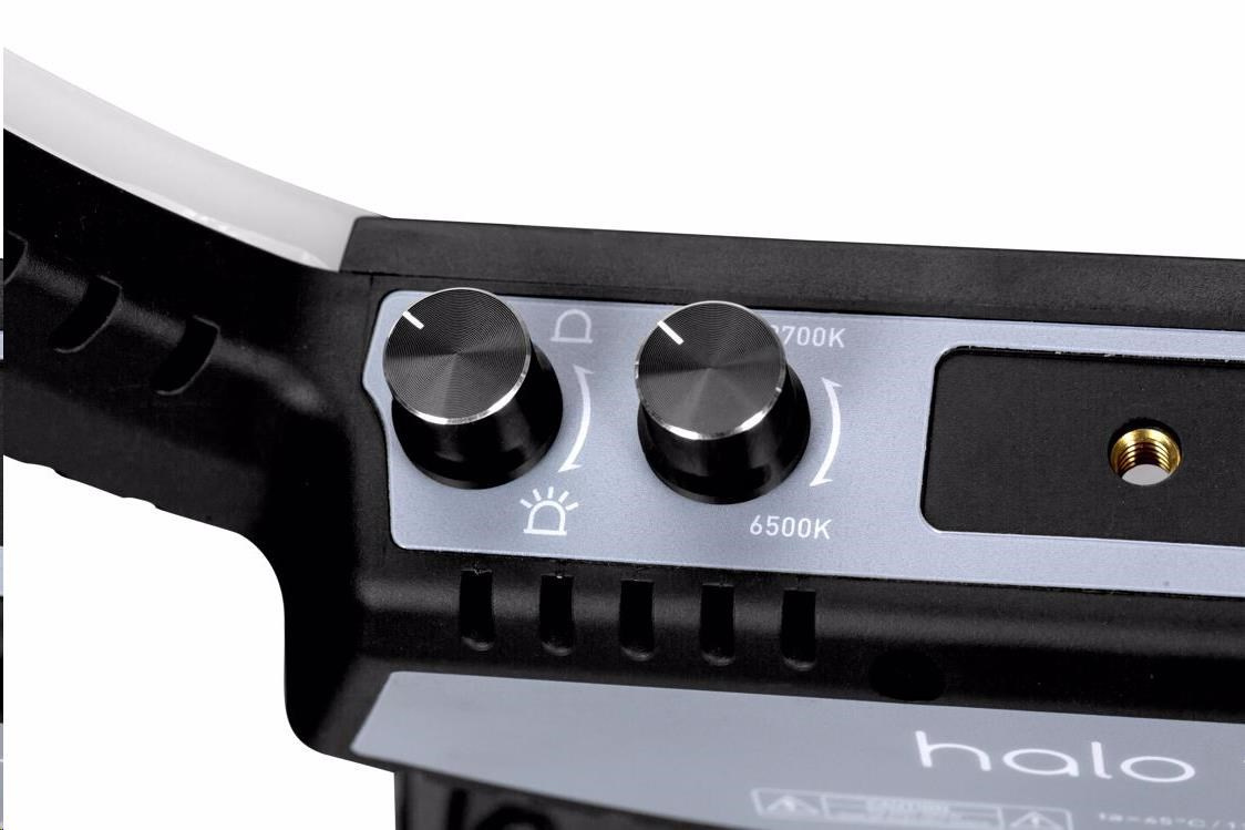 Díky průměru 35,5 cm (14") a lehké konstrukci je Halo 14 ideální kruhové světlo pro práci v malých prostorech a pro častý transport z místa na místo. LED kruhové světlo Halo 14 lze napájet dodávaným AC adaptérem.