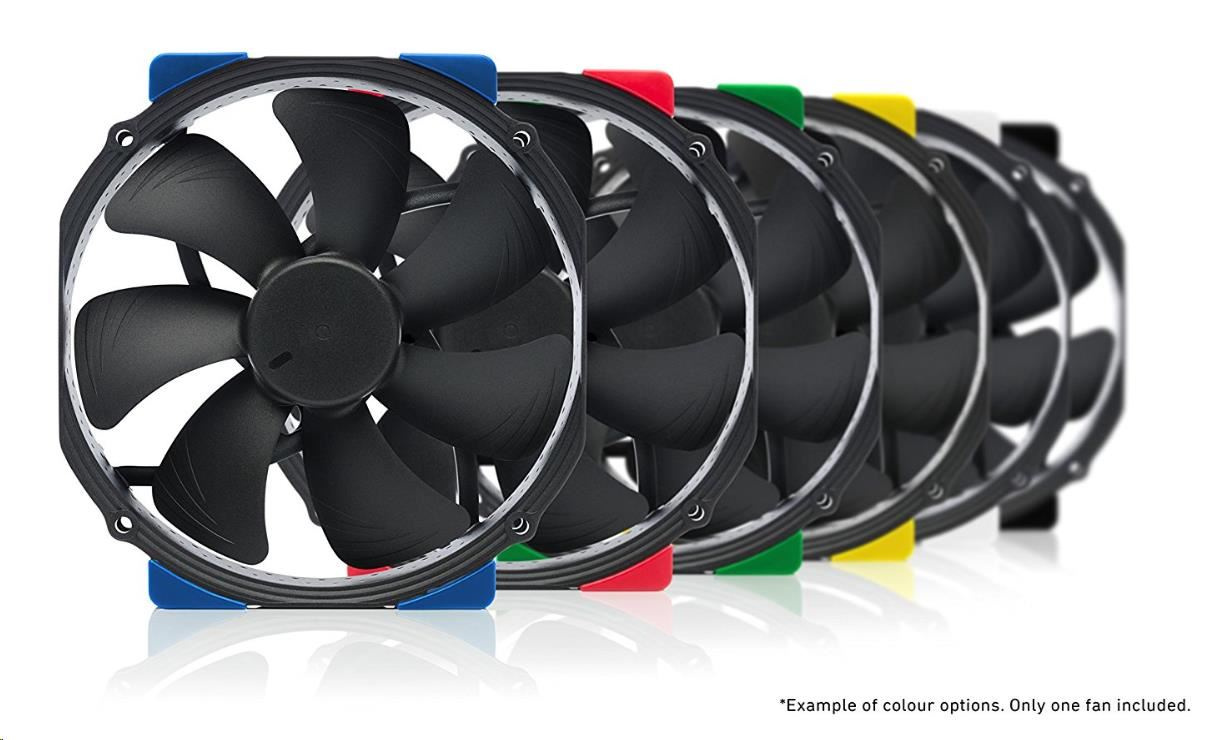 ventilátor, tichý, rozměry 140x150x25mm, průtok 140.2 m3/h, 300 až 1500 otáček, SSO2, 4pin PWM, s vyměnitelnými barevnými antivibračními podložkami