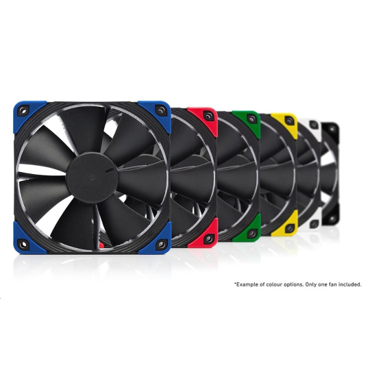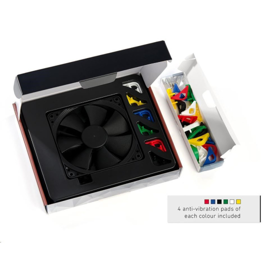 ventilátor, tichý, rozměry 120x120x25mm, hlučnost 18.6 až 22.4dB, průtok 74.3 až 93.4 m3/h, 300 až 1500 otáček, optimalizovaná geometrie a povrch 7 lopatek, SSO2, edice Chromax - vyměnitelné barevné antivibrační podložky