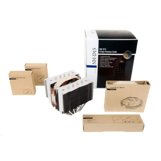 Built on the basis of the legendary NH-D14 and carrying on its quest for ultimate quiet cooling performance, Noctua’s flagship model NH-D15 is an elite-class dual tower cooler for the highest demands. Its expanded heatpipe layout and two premium grade NF-A15 140mm fans with PWM support for automatic speed control allow it to further improve the NH-D14’s award-winning efficiency. Topped off with the trusted, pro-grade SecuFirm2™ multi-socket mounting system, Noctua’s proven NT-H1 thermal compound and full 6 years manufacturer’s warranty, the NH-D15 forms a complete premium quality solution that represents a deluxe choice for overclockers and silent-enthusiasts alike.