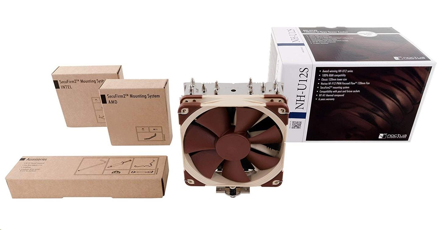 The NH-U12S is the latest 12cm model of Noctua’s classic U-series single tower CPU coolers, which have received more than 400 awards and recommendations from the international press. The S-version’s 45mm slim shape guarantees 100% compatibility with tall RAM modules and at the same time, its fine-tuned design and the class-leading NF-F12 FocusedFlow™ fan with PWM support for fully automatic speed control allow it to further improve its predecessor’s renowned quiet cooling performance. Topped off with the trusted, pro-grade SecuFirm2™ multi-socket mounting system, Noctua’s proven NT-H1 thermal compound and full 6 years manufacturer’s warranty, the NH-U12S is a complete premium quality solution that combines outstanding performance, quiet operation and excellent compatibility.