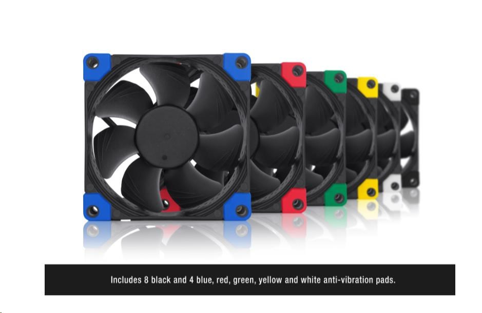 | Obsah balení | 8x NA-AVP5 chromax.black protivibrační podložky 4x NA-AVP5 chromax.blue protivibrační podložky 4x NA-AVP5 chromax.green protivibrační podložky 4x NA-AVP5 chromax.red protivibrační podložky 4x NA-AVP5 chromax.white protivibrační podložky 4x NA-AVP5 chromax.yellow protivibrační podložky 4x fan screws |