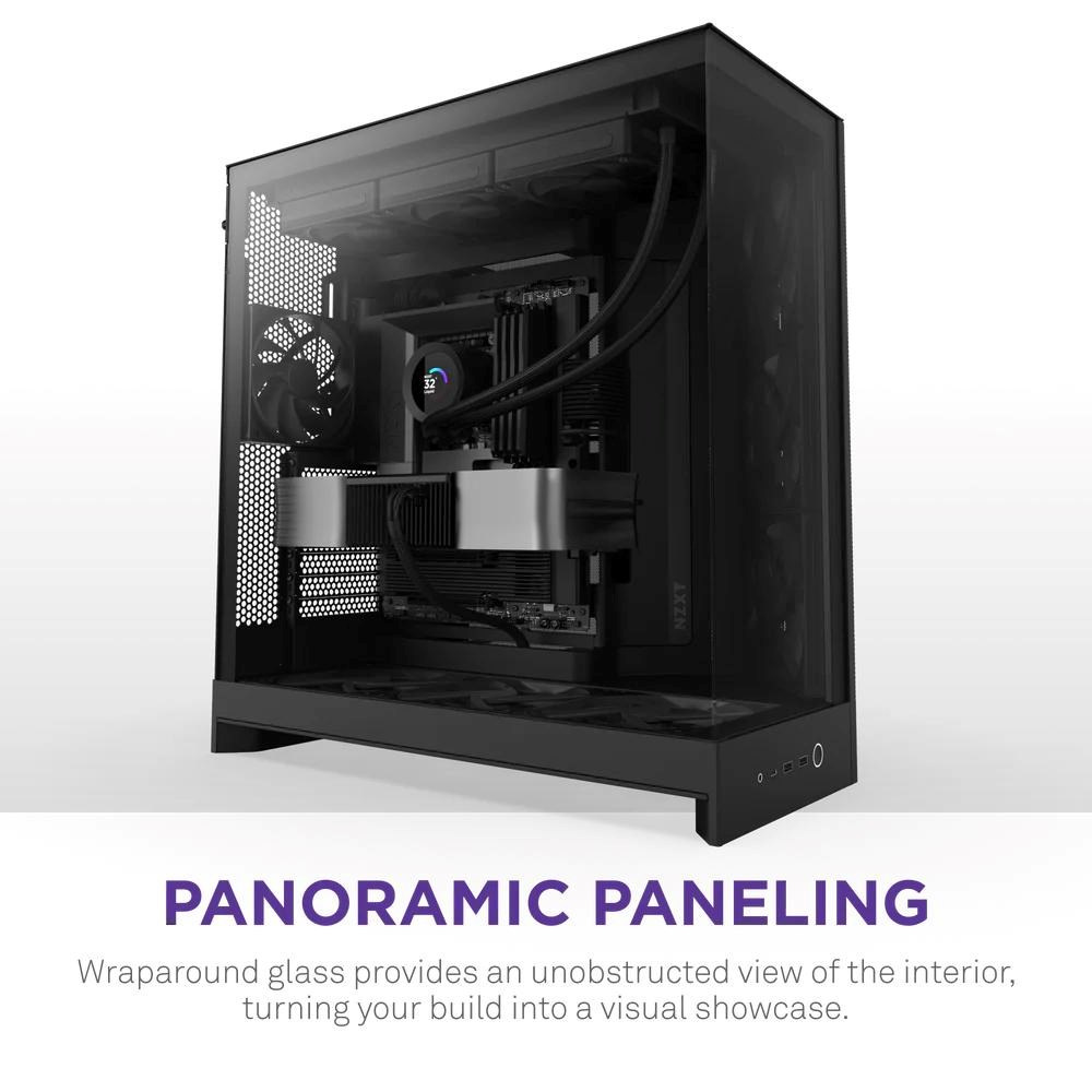 - Panoramatický výhled: Ukažte každý detail své sestavy díky bezproblémovému obklopujícímu panelu z tvrzeného skla.