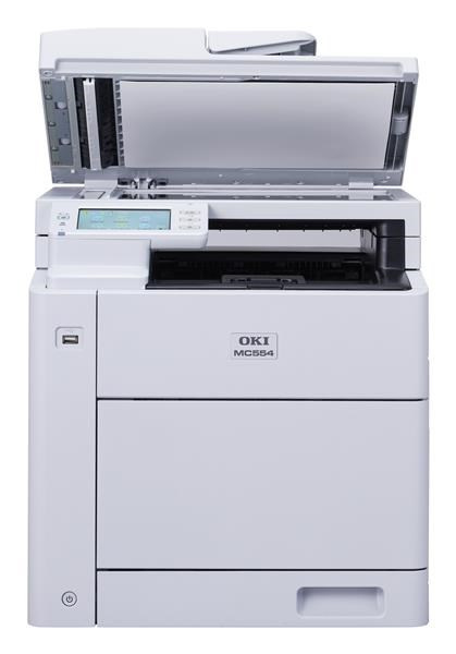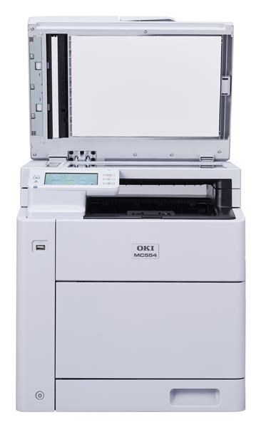 OKI MC554 je kompaktní barevné multifunkční zařízení formátu A4 navržené pro každodenní kancelářskou práci se spolehlivým výkonem a intuitivním ovládáním. Kombinuje tisk, skenování, kopírování a faxování v jednom zařízení a poskytuje rychlost barevného a černobílého tisku až 32 stran za minutu s rychlým výstupem první stránky.