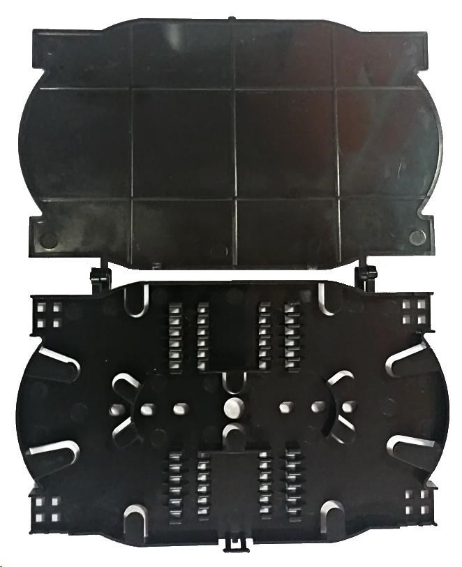Optická kazeta s víčkem a hřebínky pro 24 svarů ve 2 úrovních. Rozměry: 155x105x12mm Lze dokoupit zatavovací ochrany svaru s ocelovým výztužným drátem: