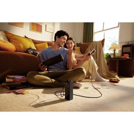 EcoFlow RAPID Power Bank s kapacitou 25000mAh, powerbanka s maximálním výkonem 170W. Disponuje inteligentním rozdělením energie až na čtyři zařízení současně. Její aktuální provozní podmínky je možné průběžně sledovat na TFT displeji. Originální technologie X-Guard soustavně monitoruje celý proces nabíjení a zajišťuje tak bezpečný a stabilní provoz. Powerbanka se dokáže nabít na 50 % za pouhých 26 minut. Disponuje zatahovacím 67 cm USB-C (100W) kabelem a 26 cm USB-C (100W) kabelem s poutkem.