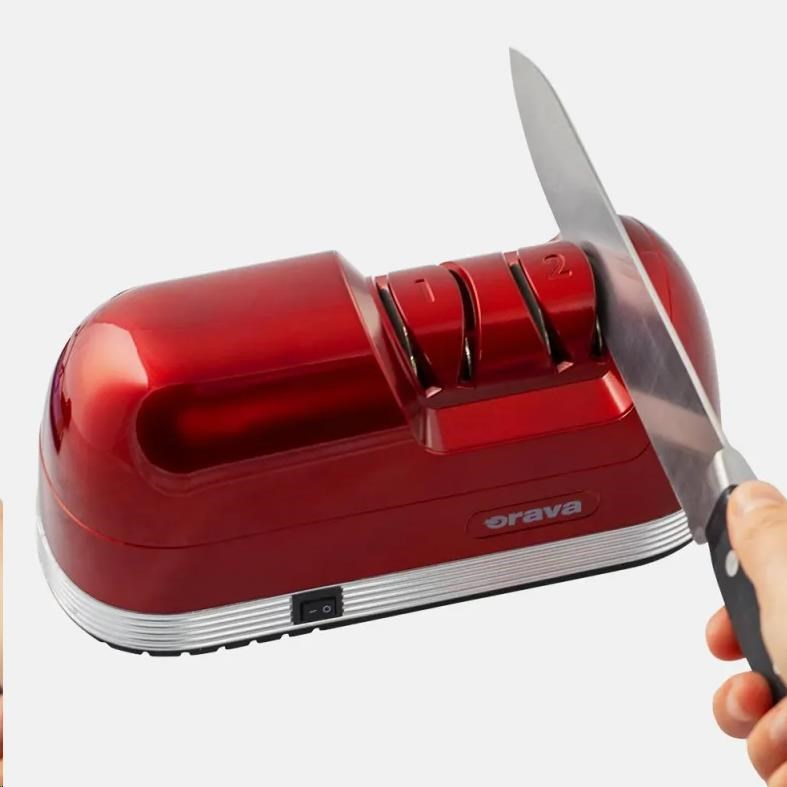 Orava elektrický brousek nožů, dvoustupňový ostřící systém, diamantové brusné kotouče, červený