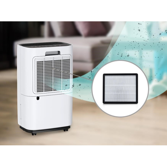 Odvlhčovač DEHUM 1 je vysoušeč vzduchu, který dokáže odvlhčit a částečně vyčistit vzduch v místnosti. Jedná se o kompresorový typ vysoušeče vzduchu s HEPA filtrem, který účinně zachycuje prachové částice, kouř bakterie nebo pyl.