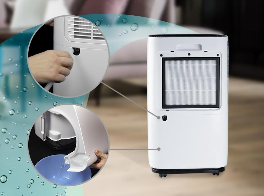 Odvlhčovač nabízí také režim sušení prádla, kdy vestavěný ventilátor pracuje na plné obrátky a vytáhne vlhkost studeného vzduchu na maximum.
