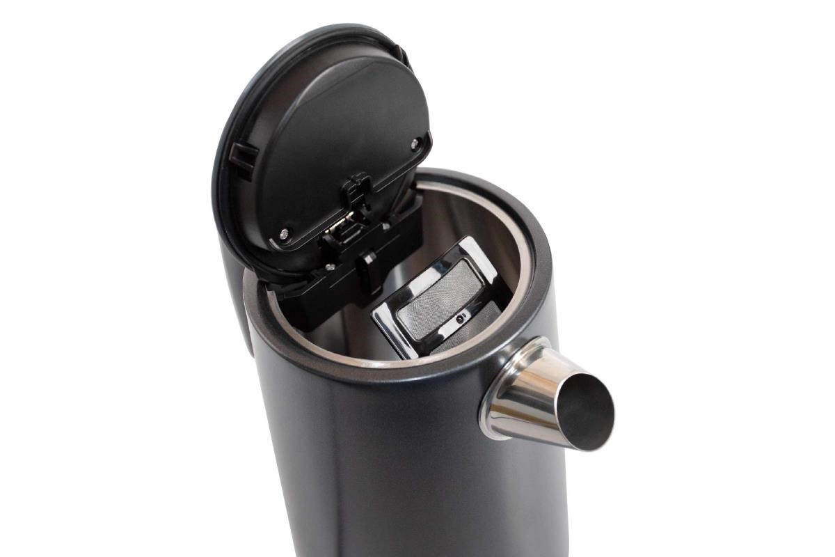 Automatická varná konvice s možností nastavení teploty, Elektronická regulace teploty vodu zahřeje na předem zvolenou teplotu, Nastavení 5 různých teplot: 60, 70, 80, 90 a 100 ° C, Objem vody: max. 1,7 l, Varná nádoba na odnímatelném 360 ° otočném podstavci, Topné těleso překryté deskou z ušlechtilé oceli, Ochrana před ohřevem bez vody, automatické vypnutí, Úložné místo na síťovou šňůru v podstavci konvice, Napájení: 220 - 240V ~ 50/60 Hz, 2 520 - 3 000W.