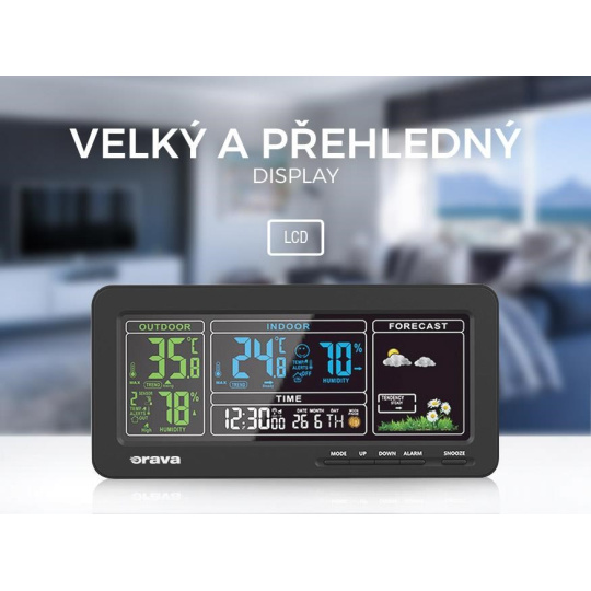 Meteostanice Orava Meteo-1 vás spolehlivě informuje o tom, jaká teplota je v interiéru i za okny vašeho domova. Na přehledem LCD displeji si kromě teploty a vlhkosti přečtete informace o čase, datu a předpovědi počasí.