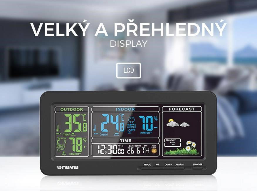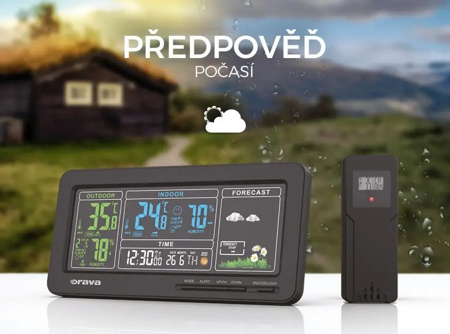 Meteostanice Orava Meteo-1 vás spolehlivě informuje o tom, jaká teplota je v interiéru i za okny vašeho domova. Na přehledem LCD displeji si kromě teploty a vlhkosti přečtete informace o čase, datu a předpovědi počasí.