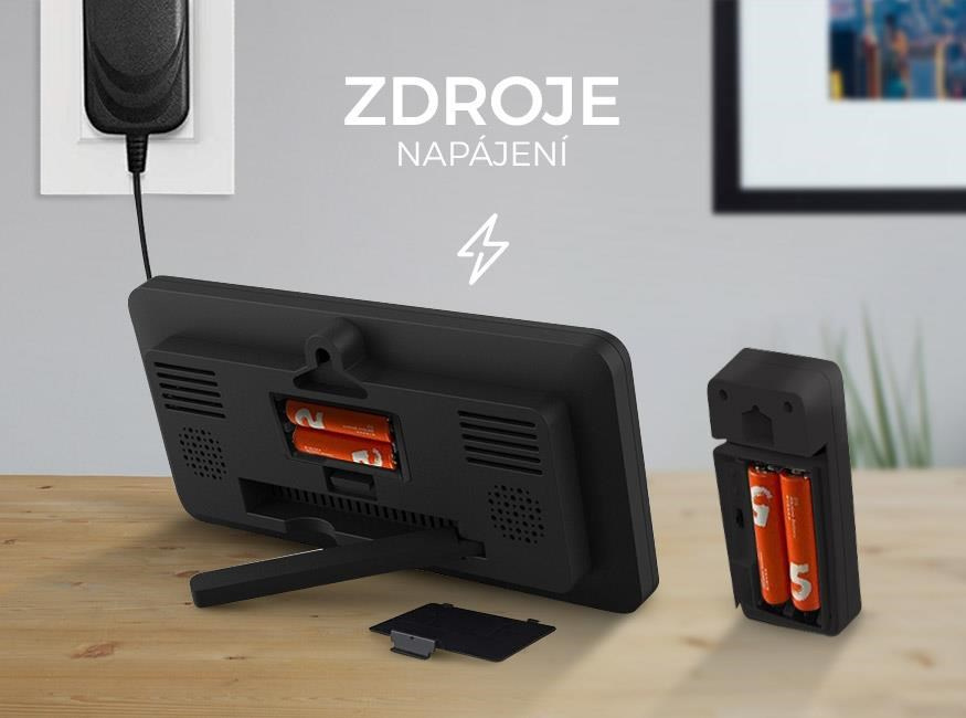 Meteostanici lze napájet z vhodného AC adaptéru 5 V (není součástí balení). V případě výpadku elektrického proudu meteostanici udrží v chodu i 2 baterie (AAA). Bezdrátový senzor je také napájen dvěma 1,5V bateriemi (AAA)