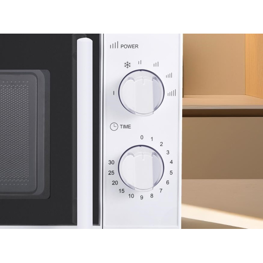 Tato mikrovlnná trouba disponuje až šesti režimy nastavení ohřevu nebo rozmrazování. Její ovládání je opravdu jednoduché a to prostřednictvím otočných ovladačů. Prvním si nastavíte sílu ohřevu a druhým čas, který požadujete na ohřev nebo rozmrazování vašeho pokrmu. Maximální čas ohřevu je 30 minut.