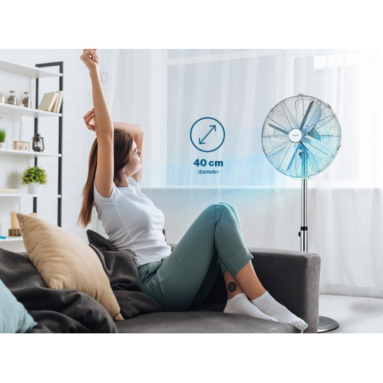 Orava SF-200 X stojanový kovový ventilátor, 3 stupně rychlosti, automatické otáčení, stříbrná