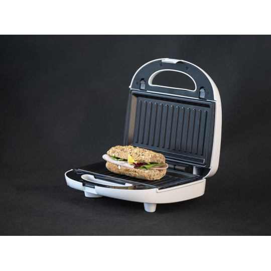 Trendem v kuchyni se stávají multifunkční pomocníci, kteří nezaberou mnoho místa, ale dokáží toho hodně. Součástí multifunkčního sendvičovače Orava ST-500 je až pět různých pečicích desek, což oceníte při přípravě rychlých teplých jídel, kterých se dospělí i děti nemohou nabažit. Pokud jde o přípravu syté snídaně, rychlé večeře nebo sladkého pohoštění jako odměna po celodenní práci, je na čase ho vyndat z poličky. Díky příkonu 750 W v něm rychle připravíte lahodné tousty pro své blízké, ugrilujete kuře, upečete panini, připravíte sladké vafle, zbožňované koblihy a sladké pečivo ve tvaru nápaditých lastur vlastní výroby. Stačí si vybrat jednu z pěti přiložených desek, které díky posuvným zámkům bez námahy a bezpečně vložíte do spotřebiče - a příprava pokrmů může začít. Přestože spotřebič peče a zapéká, můžete si být jisti, že je o vaši bezpečnost postaráno. Spotřebiči nechybí tepelná pojistka a dostatečně velká rukojeť je navíc tepelně izolovaná. Červená nebo zelená kontrolka jasně ukazuje, kdy topinkovač pracuje na plné obrátky. Díky nepřilnavému povrchu se navíc pečicí desky snadno čistí, což z něj spolu s širokými možnostmi přípravy pokrmů dělá topinkovač, který si v kuchyni oblíbíte.