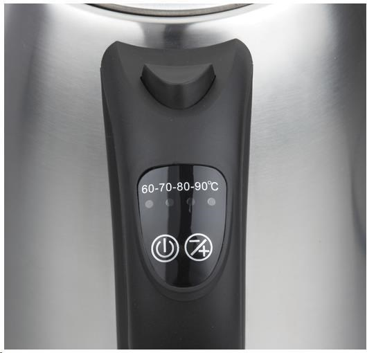 Nerezová rychlovarná konvice VK-3817 A s příkonem 2000 W a objemem 1,7 l. Konvice umožňuje elektronicky regulovat teplotu vody, zahřeje na předem zvolenou teplotu. Nastavení 5-ti různých teplot a stupnice se mění podle barev.