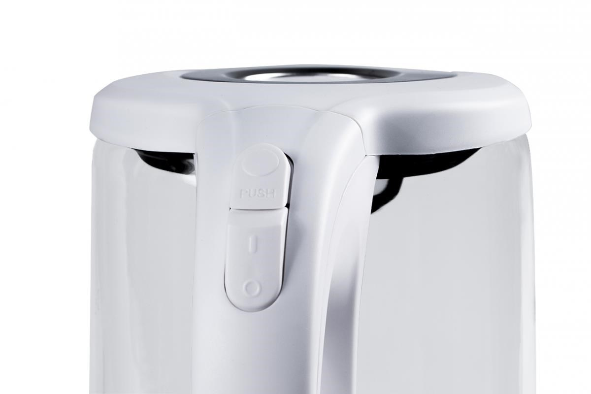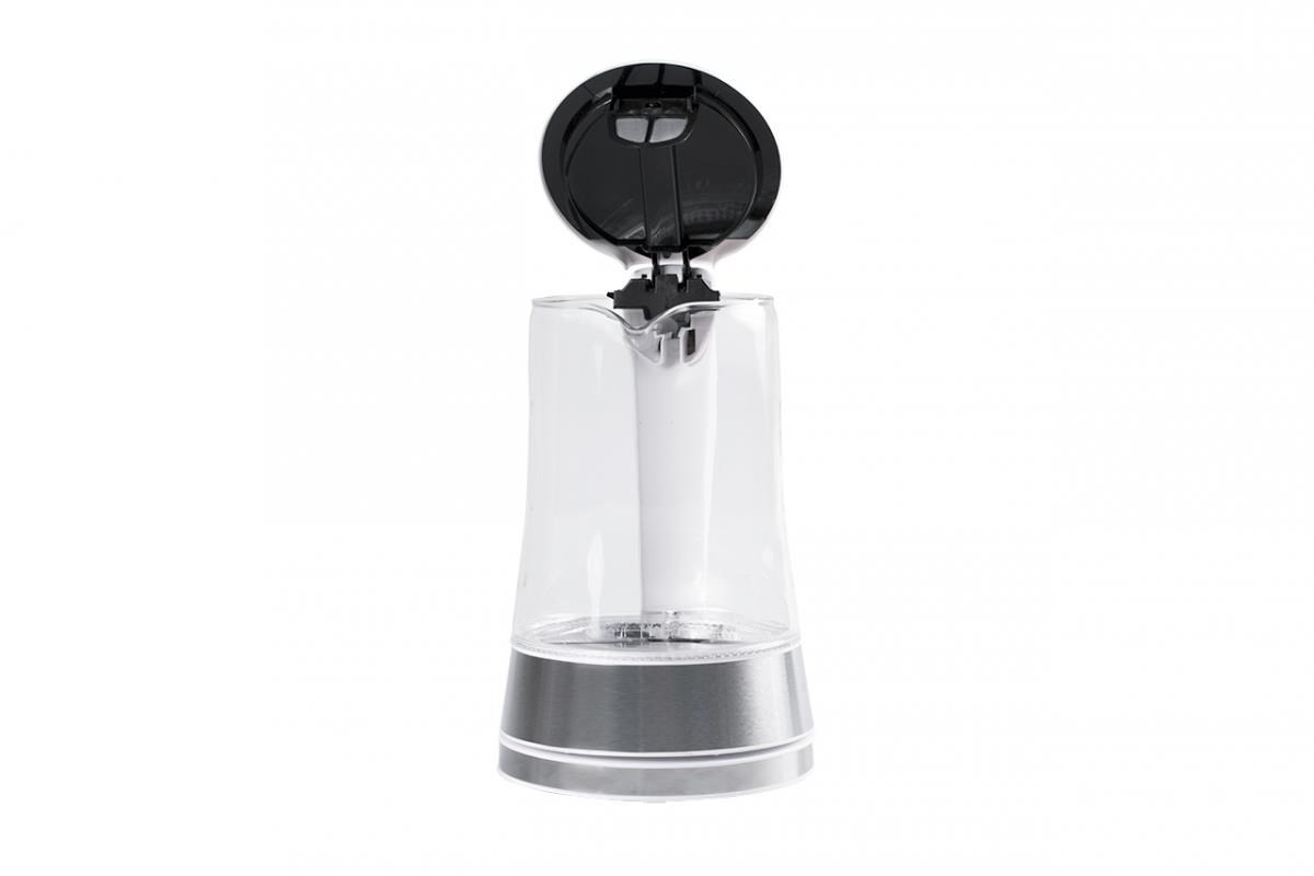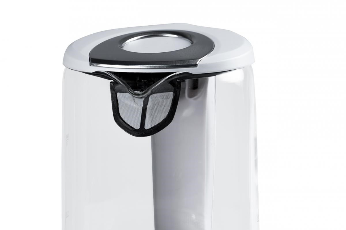 Čajová skleněná konvice, vnitřní LED osvětlení během provozu, moderní nerezová-skleněný design, objem vody: max. 1,7 l, varná nádoba na odnímatelném 360 ° otočném podstavci, topné těleso překryté deskou z ušlechtilé oceli, ochrana před ohřevem bez vody, automatické vypnutí, síťová šňůra s místem pro uložení v podstavci, napájení: 220 - 240V ~ 50 / 60Hz, max. 2 200 W.