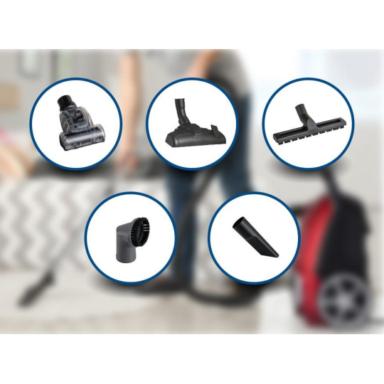 Orava Volcano vysavač, 600 W, sáčkový, objem 4 l, ECO motor, 68 dB, akční rádius 9 / 6 m, červená