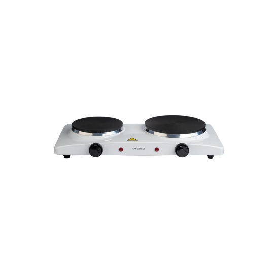 "Elektrický vařič se dvěma plotýnkami 185mm a 155mm topné desky. Plynulá regulace ohřevu. Světelná signalizace ohřevu. Ochrana proti přehřátí Napájení: 220 - 240V~ 50/60Hz, 2 500 W".