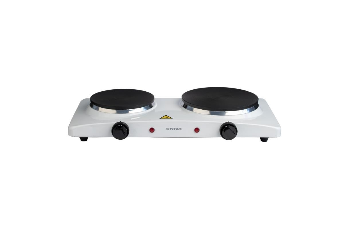 Orava VP-91 W elektrický vařič, 1500 W, regulace teploty, 2 plotýnky, manuální ovládání, průměr 185 a 155 mm, bílá