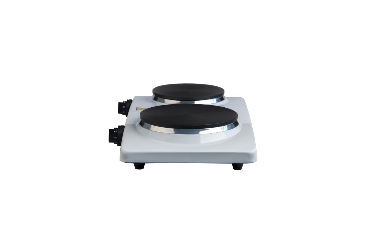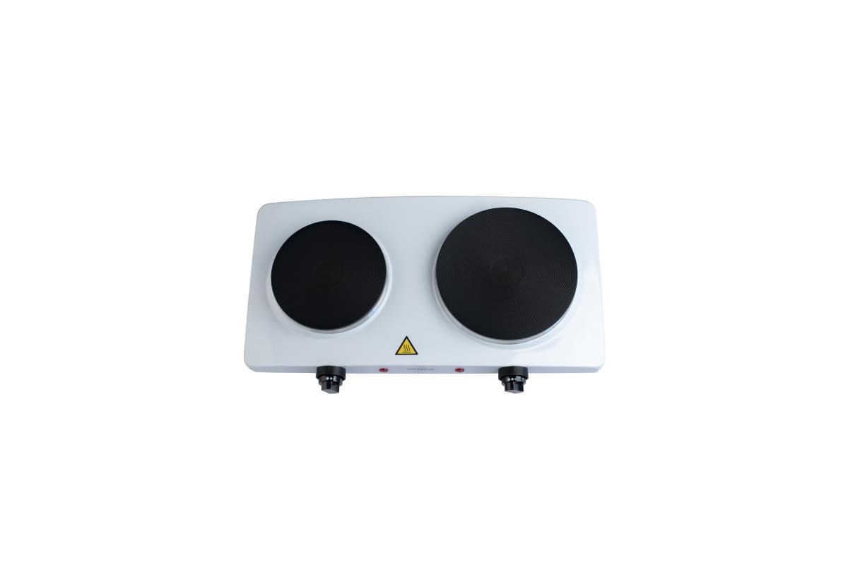 "Elektrický vařič se dvěma plotýnkami 185mm a 155mm topné desky. Plynulá regulace ohřevu. Světelná signalizace ohřevu. Ochrana proti přehřátí Napájení: 220 - 240V~ 50/60Hz, 2 500 W".