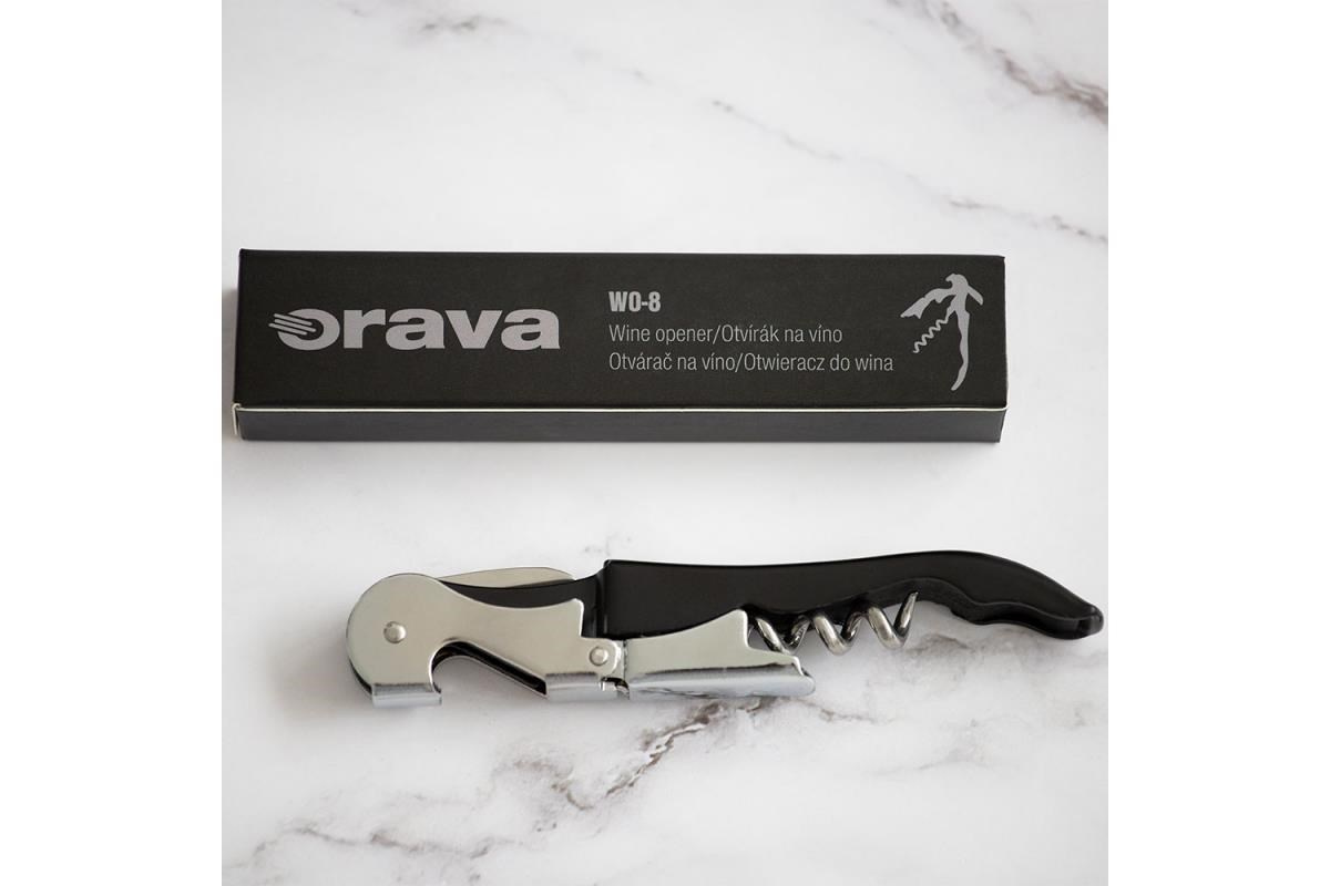 Orava WO-8 pákový otvírák na víno a pivo, dvoustupňový, praktický nožík, černá