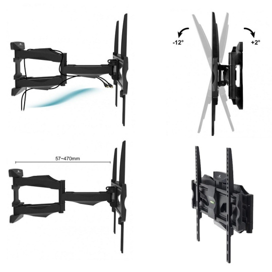 Kvalitní otočný držák LCD Fiber Mounts M7C81 Kvalitní velmi pěkný držák na televize 26-60", snadné polohování, otočný +/-75°, sklopný +2°/-12°, výsuvný 57-470mm, korekce roviny +/-3°, krytky kabeláže, VESA 100x100 až 400x400, nosnost 45kg Potřebujete zavěsit televizi na spolehlivý a bezpečný držák a nechcete přitom moc utrácet? Můžeme Vám doporučit nástěnný Tv držák Fiber Mounts M7C81. Vysoká nosnost 45kg, dvě velmi pevná ramena, zajištění televizoru proti vysazení, větší instalační plocha pro ukotvení do stěny. Držák nabízí pohodlné polohování televizoru - otáčení na obě strany, naklonění obrazovky mírně nahoru nebo dolů, nastavení vzdálenosti od zdi dle potřeby. Výsuv obrazovky probíhá v ose uchycení, proto je držák vhodný pro ukotvení nejen na stěnu, ale i do připravených výklenků nebo do obývacích stěn. Pokud se Vám nepovedla montáž přesně do roviny a obrazovka není po zavěšení ve vodováze, není potřeba provádět novou instalaci, snadno upravíte rovinu televize bez nutnosti reinstalace. Nástěnný úchyt i ramena držáku jsou opatřeny designovými krytkami, pod kterými můžete skrytě vést veškerou kabeláž. Barevné provedení je černé, na držák poskytujeme prodlouženou záruku na 3 roky. Pěkný kvalitní nástěnný držák na televize Fiber Mounts M7C81 Televizní držák otočný, sklopný, výsuvný, velmi pěkný, s vedením kabelů Fiber Mounts M7C81 Technické údaje: nosnost 45kg podpora VESA standardu 100x100 až 400x400 doporučujeme na televizory s úhlopříčkou 26" až 60" vhodný na všechny typy televizorů - LCD, LED, OLED, QLED, plazma, 3D, Smart, prohnuté na Tv zn. Samsung, LG, SONY, Panasonic, ECG, GoGEN, Hisense, Changhong, Hyundai, Orava, Philips ... nastavitelná vzdálenost od zdi 57mm až 470mm otáčení Tv na obě strany +/- 75° náklon obrazovky nahoru i dolů +2° až -12° korekce roviny obrazovky +/- 3° instalační plocha na stěnu o rozměrech 160mm x 235mm (šířka x výška) zajištění televizoru proti vysazení integrovaná vodováha pro usnadnění montáže velmi snadné polohování bezpečná a spolehlivá ocelová konstrukce designové kryty ramen pro skryté vedení veškeré kabeláže součástí balení je univerzální instalační sada (šrouby, vruty, hmoždinky, podložky) barevné provedení černé záruka 3 roky Držák na LCD, LED, OLED i QLED televize Fiber Mounts M7C81 Držák na Tv Fiber Mounts M7C81 podporuje VESA standardy televizorů: VESA 100x100 VESA 200x100 a 100x200 VESA 200x200 VESA 300x100 a 100x300 VESA 300x200 a 200x300 VESA 300x300 VESA 400x100 a 100x400 VESA 400x200 a 200x400 VESA 400x300 a 300x400 VESA 400x400 Držák Tv Fiber Mounts M7C81 je vhodný pro zavěšení všech typů, značek a velikostí Tv, které mají hmotnost do 45kg a které podporují některý z výše uvedených VESA standardů. Na velikosti televizoru přímo nezáleží, můžete zavěsit i větší televizory za splnění výše uvedených podmínek..