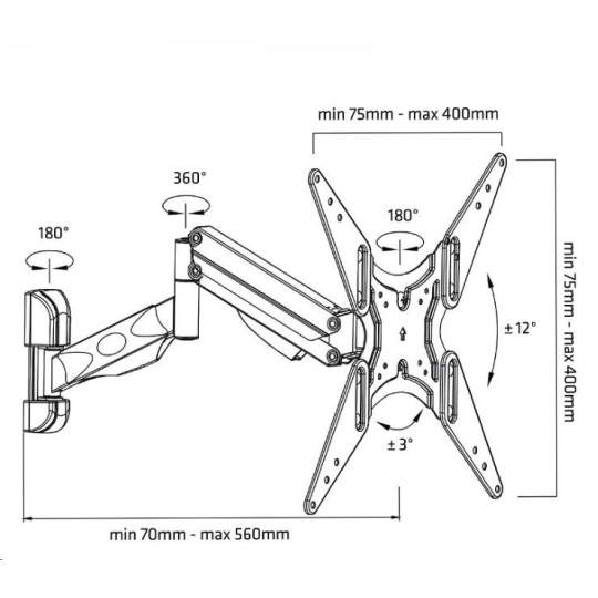 Otočný, sklopný, délkově a výškově stavitelný držák Tv Fiber Mounts AX784 Plně nastavitelný, kvalitní držák na Tv 32-60"s hmotností do 22kg Kvalitní, plně nastavitelný, designový držák na LCD, LED, OLED, 3D, Full HD televize s hmotností až 22kg. Optimální úhlopříčka televizoru 32-60". Držák je vhodný pro zavěšení televize na zeď, do výklenku, na pilíř nebo sloupek, stejně tak je držák vhodný i pro umístění televizoru do rohů místností. Plná nastavitelnost Vám umožní snadno polohovat televizi přesně dle Vašich potřeb a požadavků. Držák Tv Vás mile potěší nejen svou kvalitou ale i velmi pěkným designem a snadnou polohovatelností. Dodáváme včetně instalačního materiálu, barevné provedení černé. Otočný, sklopný, délkově a výškově nastavitelný držák na LCD LED OLED 3D Smart televize i monitory s hmotností do 22kg. Držák je vhodný pro zavěšení televize na zeď nebo do rohu místnosti, do výklenku nebo na pilíř, sloupek. Držák Tv Fiber Mounts AX784 Technické údaje: pro televizory s hmotností 9kg až 22kg na televize a monitory s úhlopříčkou 32-60" podpora VESA 75x75 až 400x400 otáčení do stran +/- 90° náklon +/- 12° úprava délky od zdi 70mm až 560mm úprava roviny obrazovky +/- 3° úchytky pro vedení kabeláže velmi pěkný vzhled snadné nastavení Tv do požadované polohy výborná kvalita barevné provedení černé záruka 2 roky Držák Fiber Mounts AX784 podporuje VESA standardy (VESA normy): VESA 75x75 VESA 100x100 VESA 200x100 VESA 200x200 VESA 300x300 VESA 400x200 VESA 400x400.